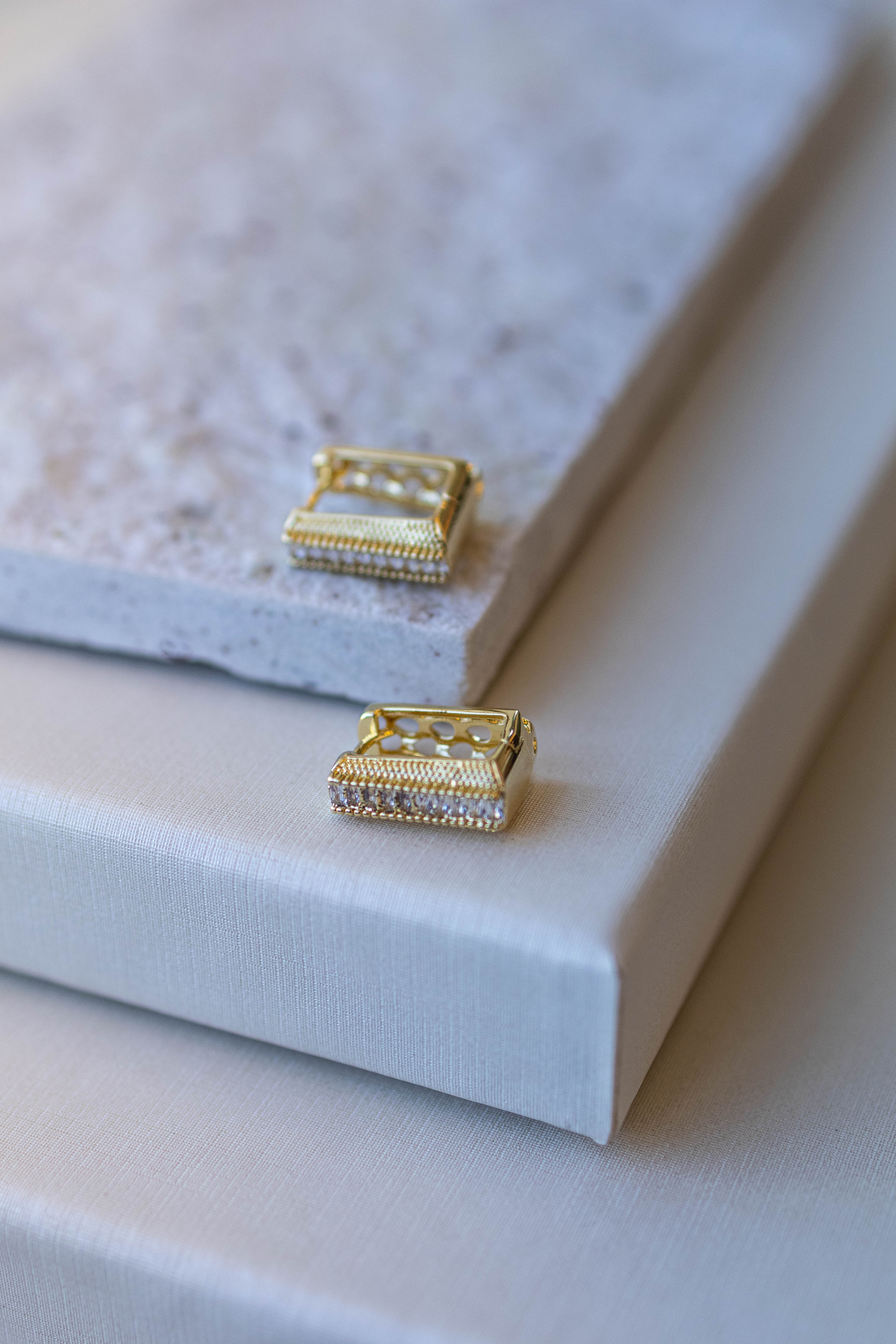 Brinco Argola Retângulo Cravejado