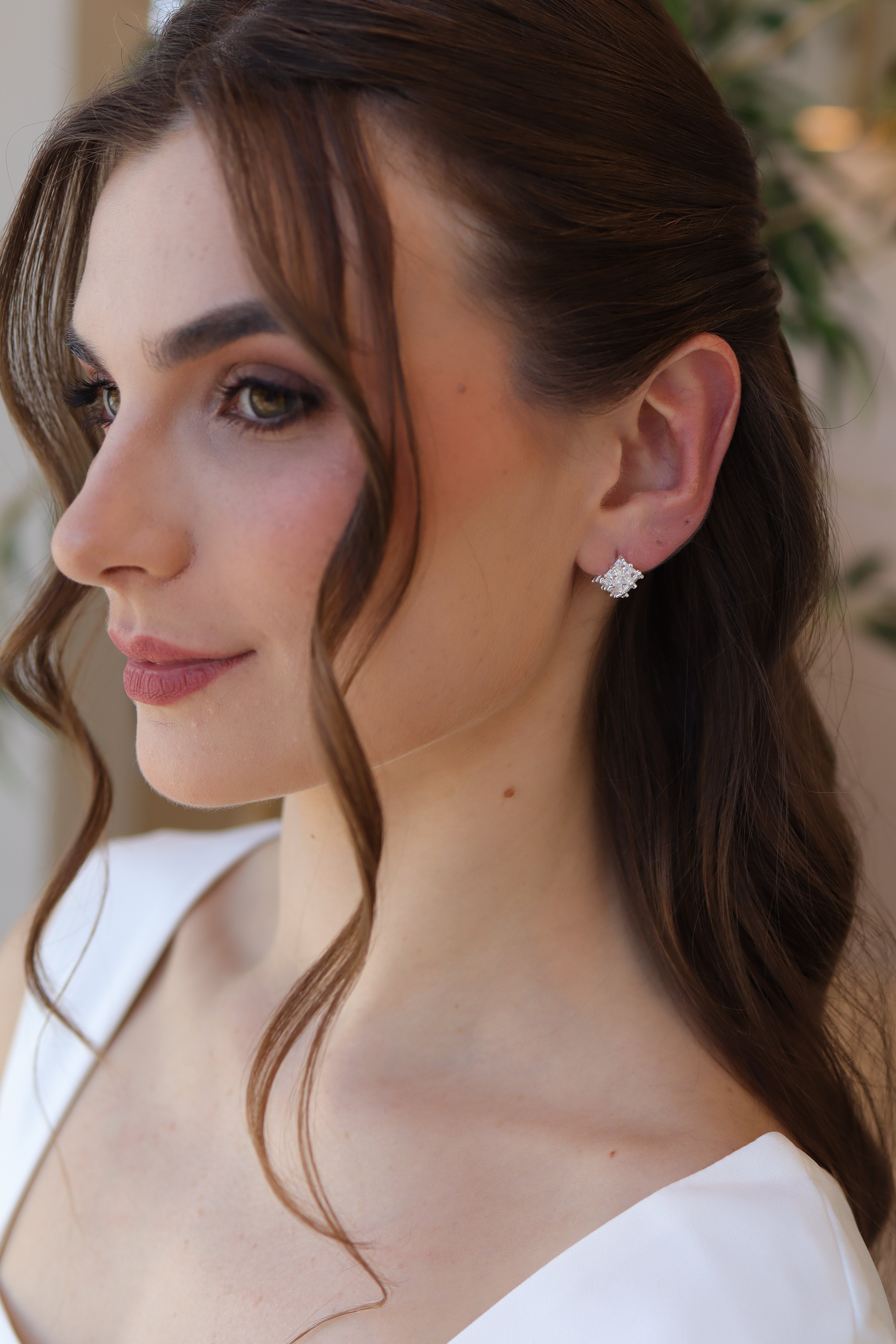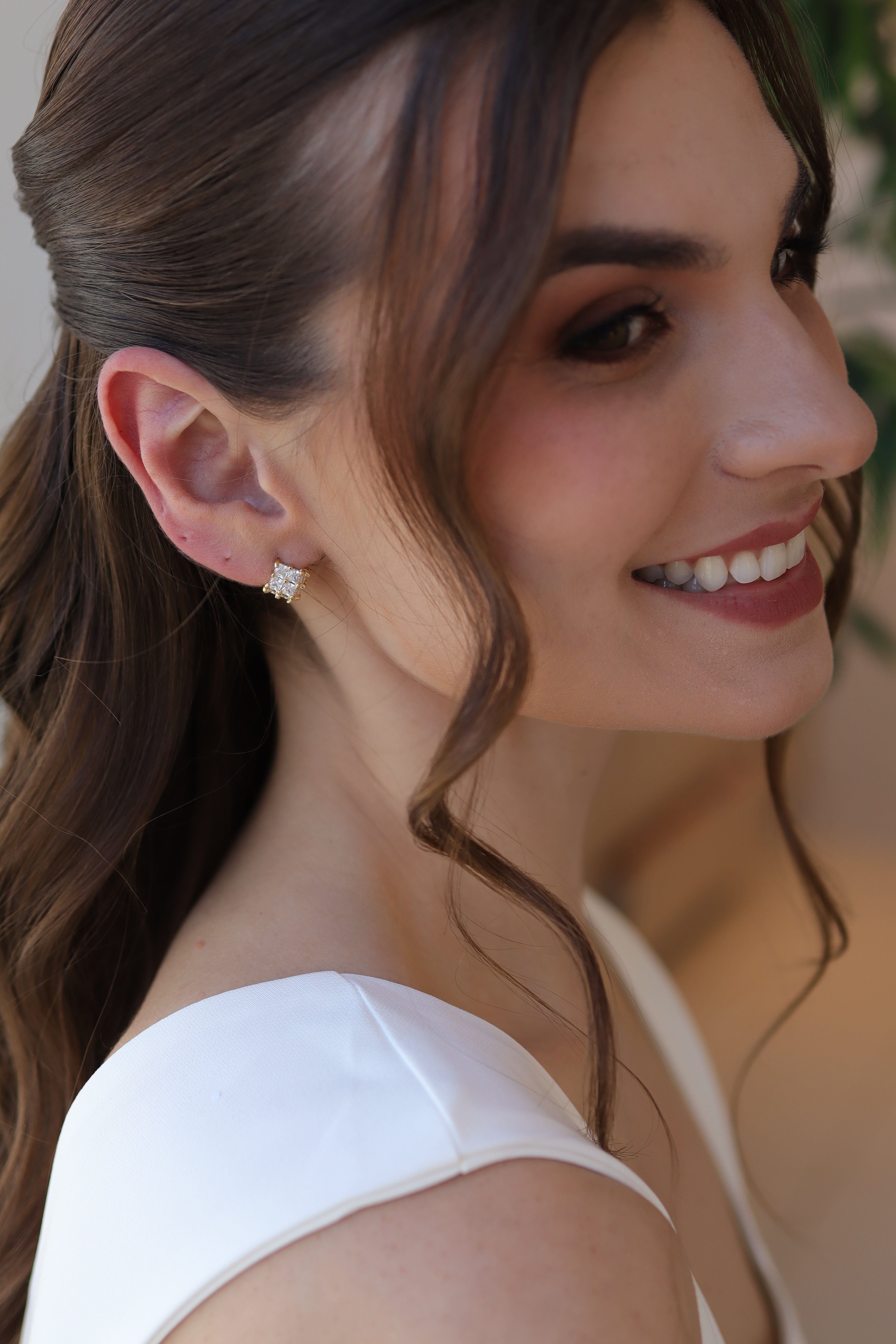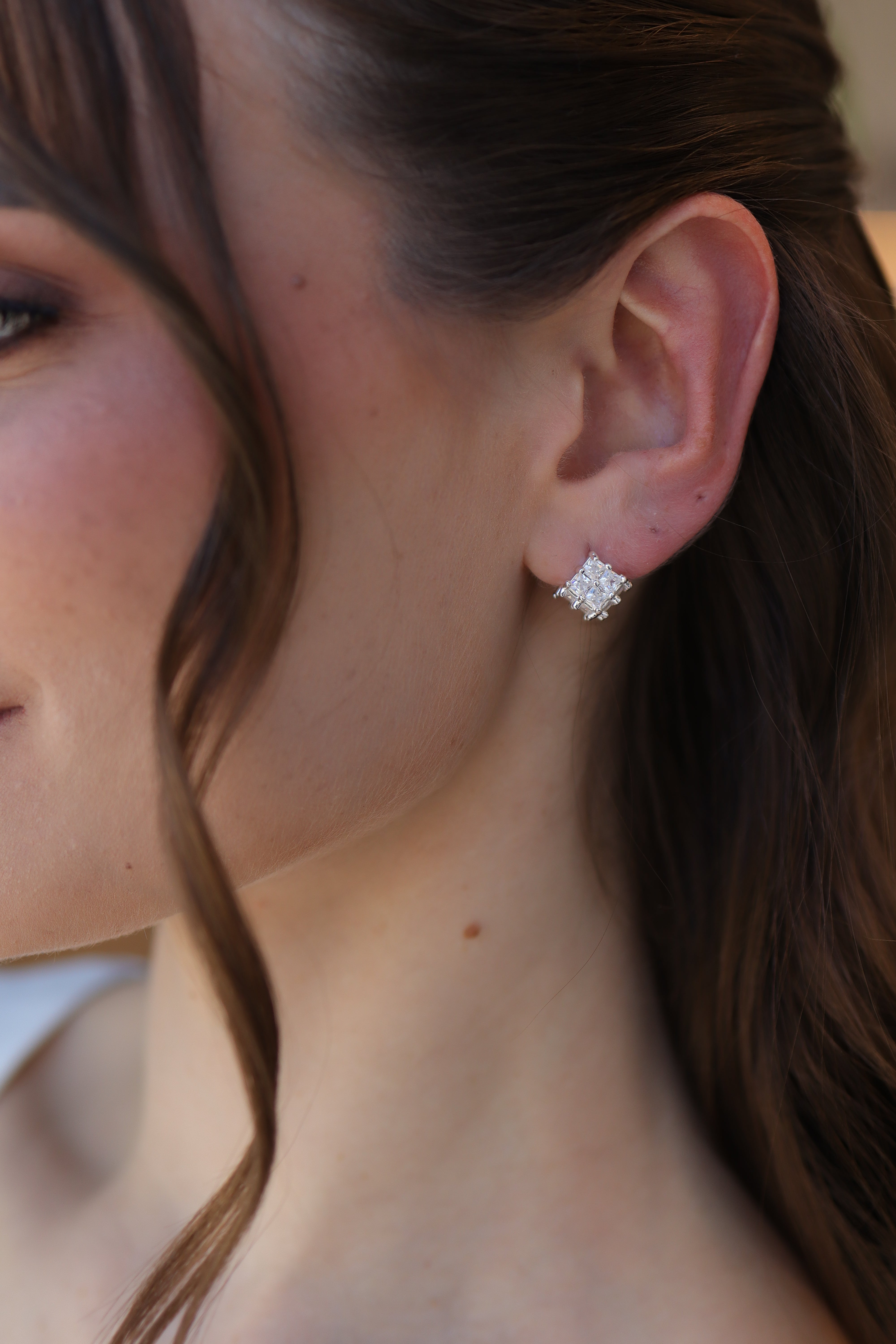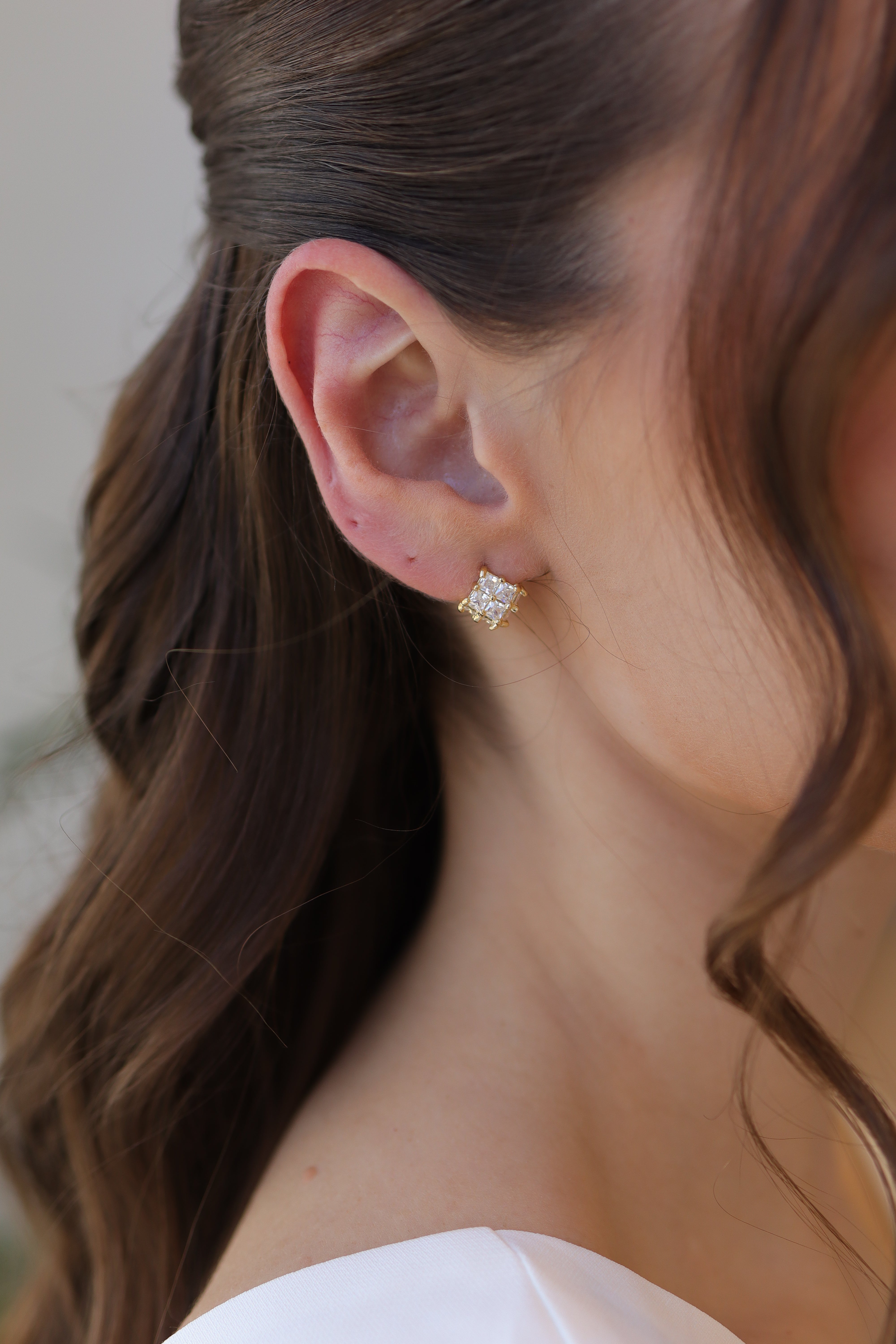 Brinco Quadradinho Zircônia Baguete