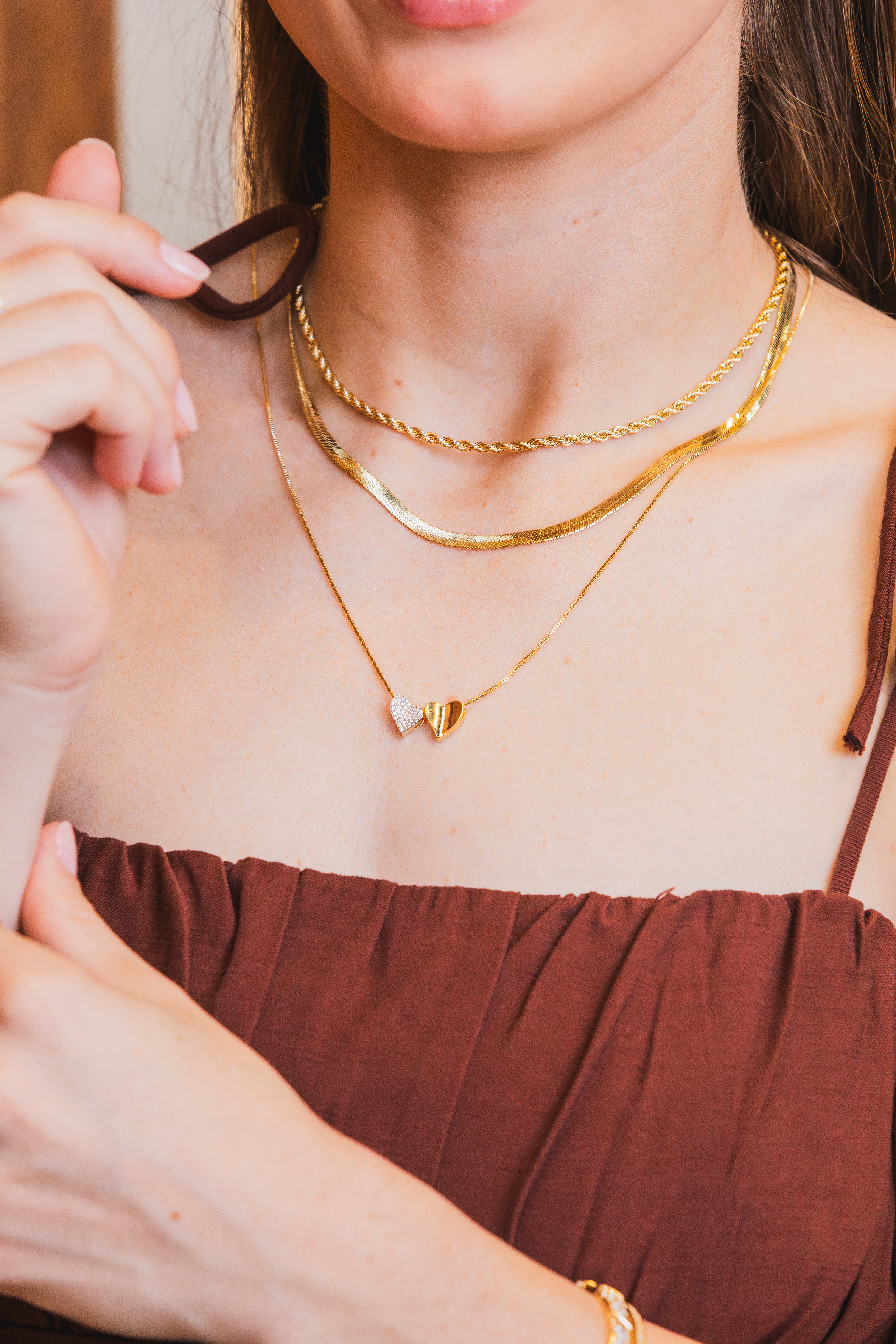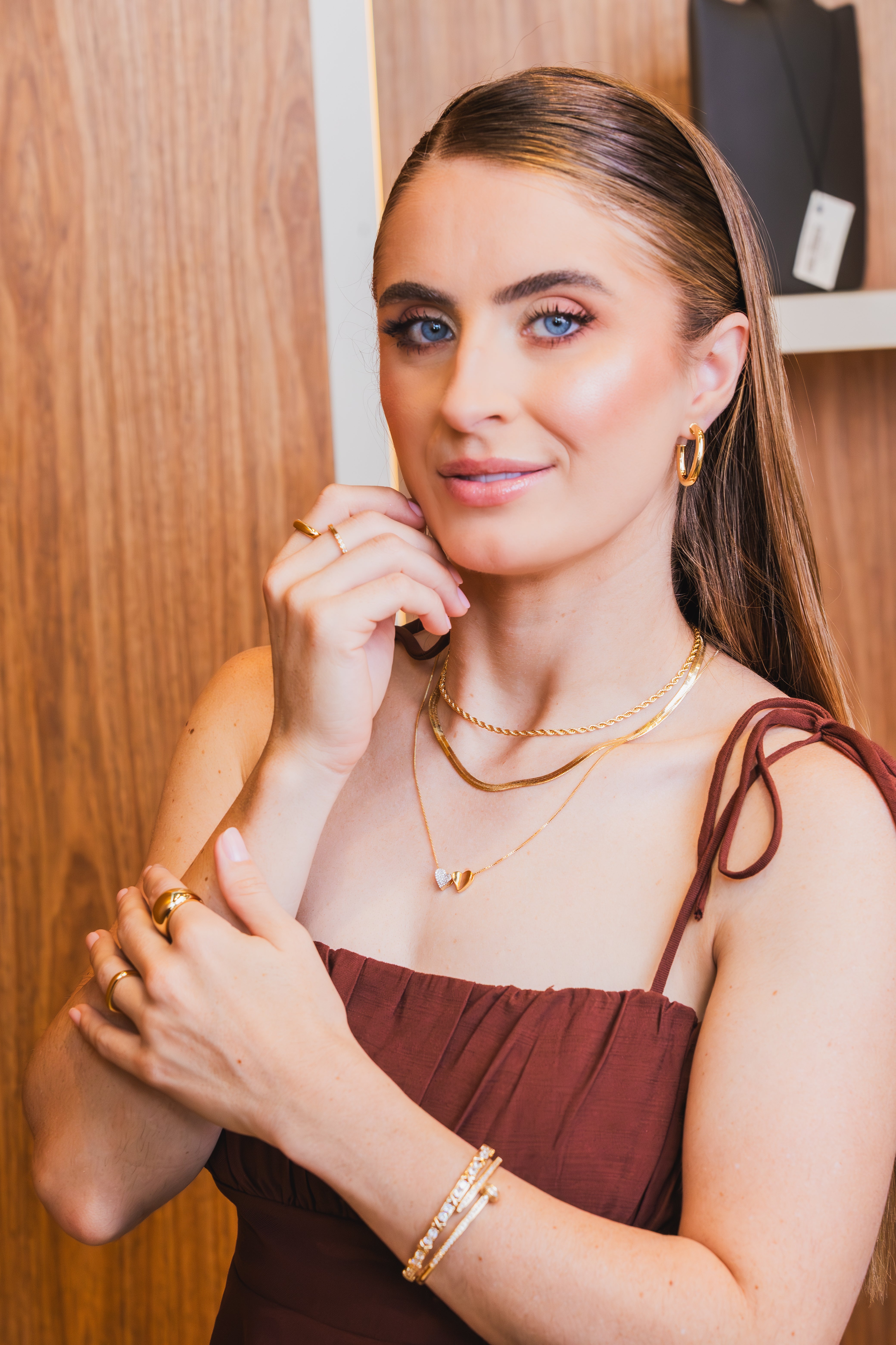 Nossas peças são finalizadas com banho de ouro 18k ou ródio branco, proporcionando um acabamento sofisticado, durável e com excelente brilho.