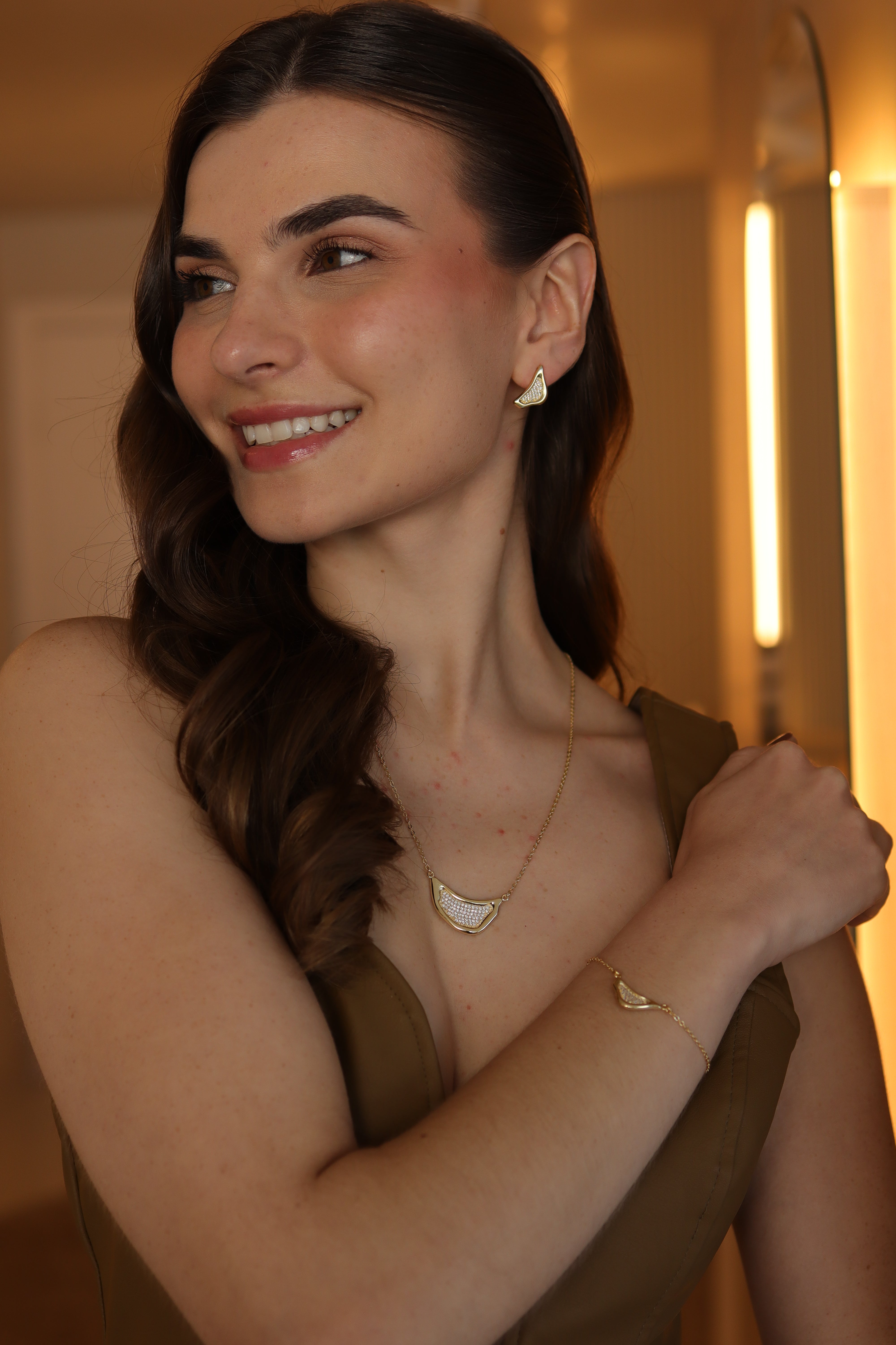 Colar Orgânico Cravejado Dourado