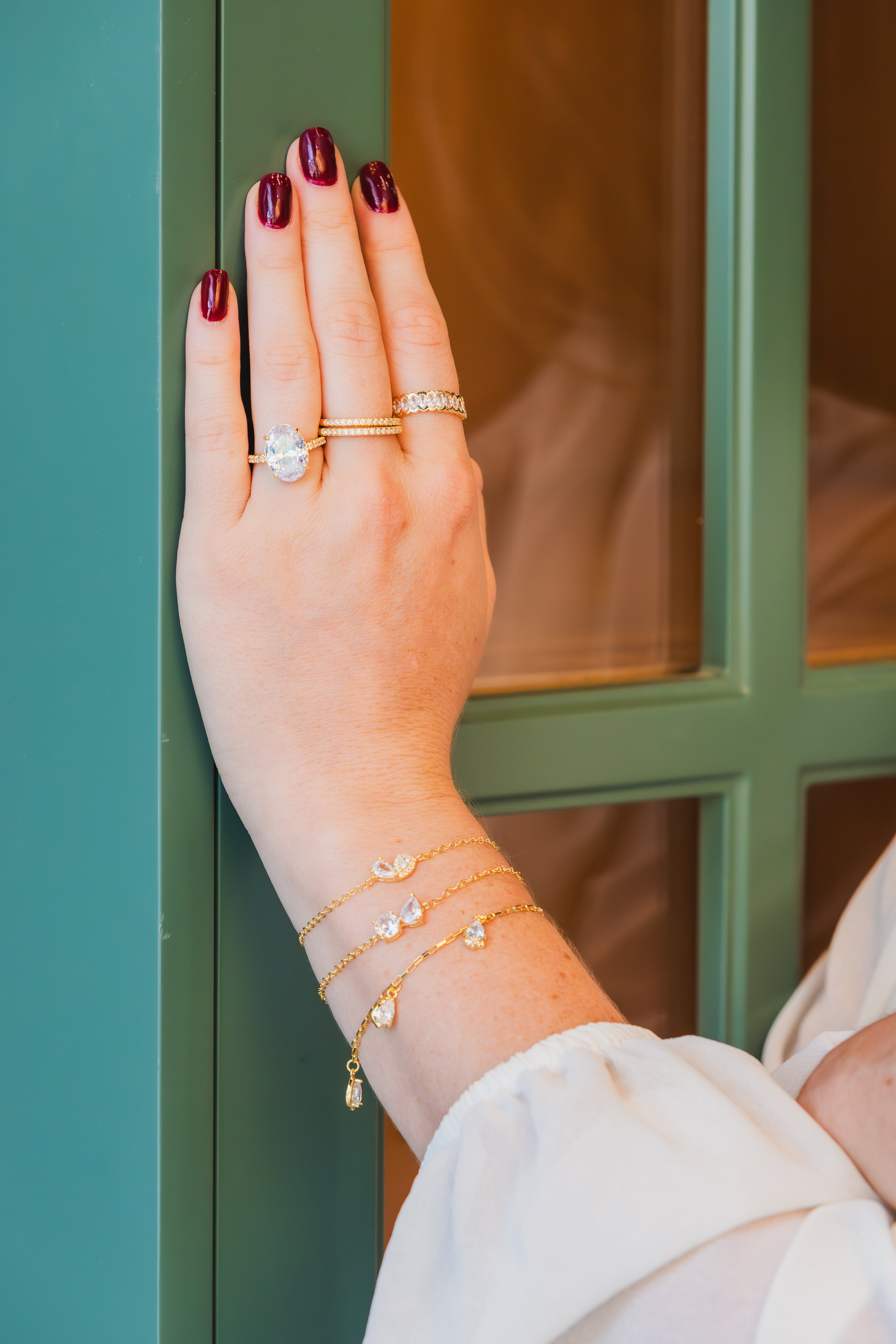 Nossas peças são finalizadas com banho de ouro 18k ou ródio branco, proporcionando um acabamento sofisticado, durável e com excelente brilho.